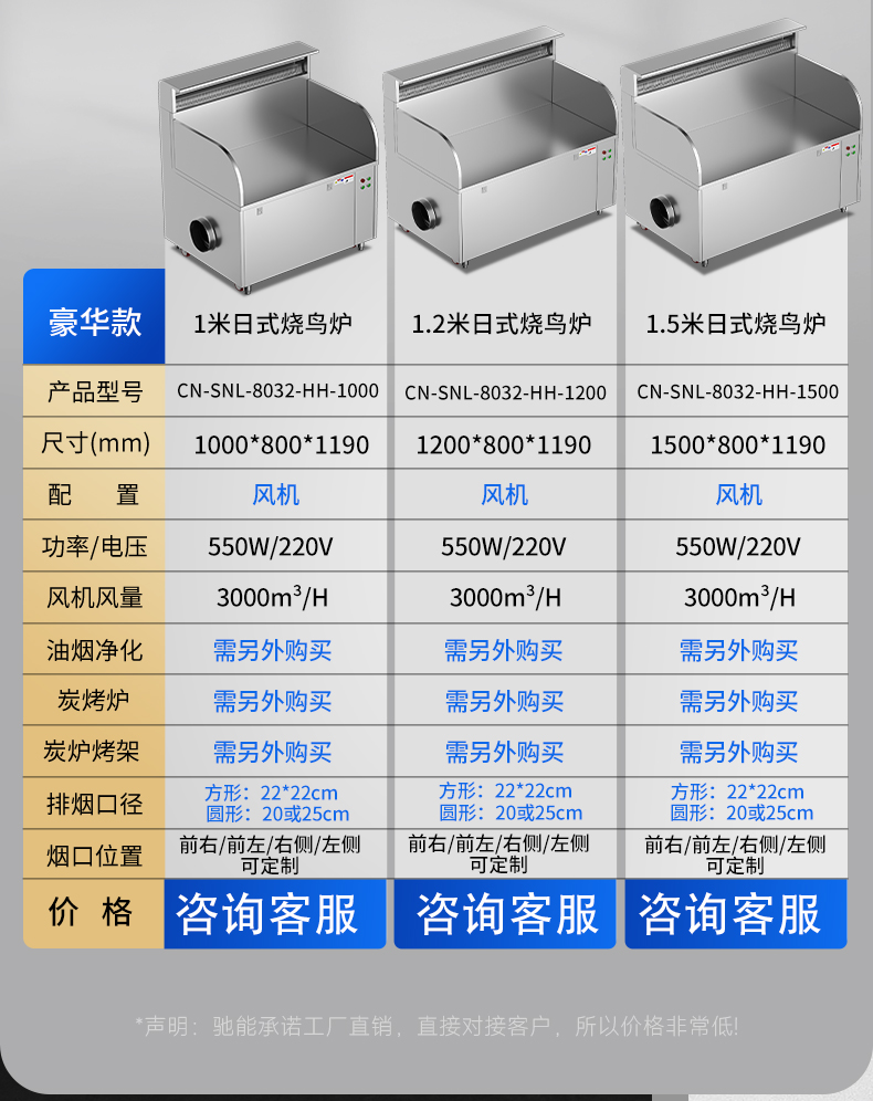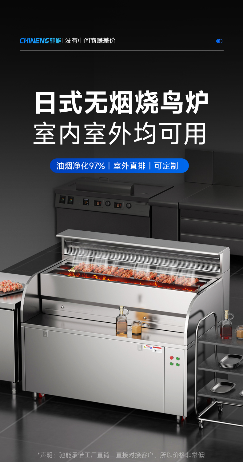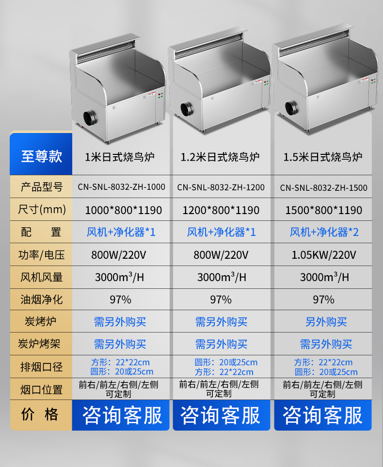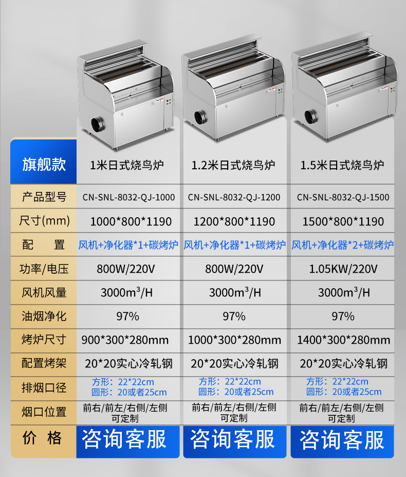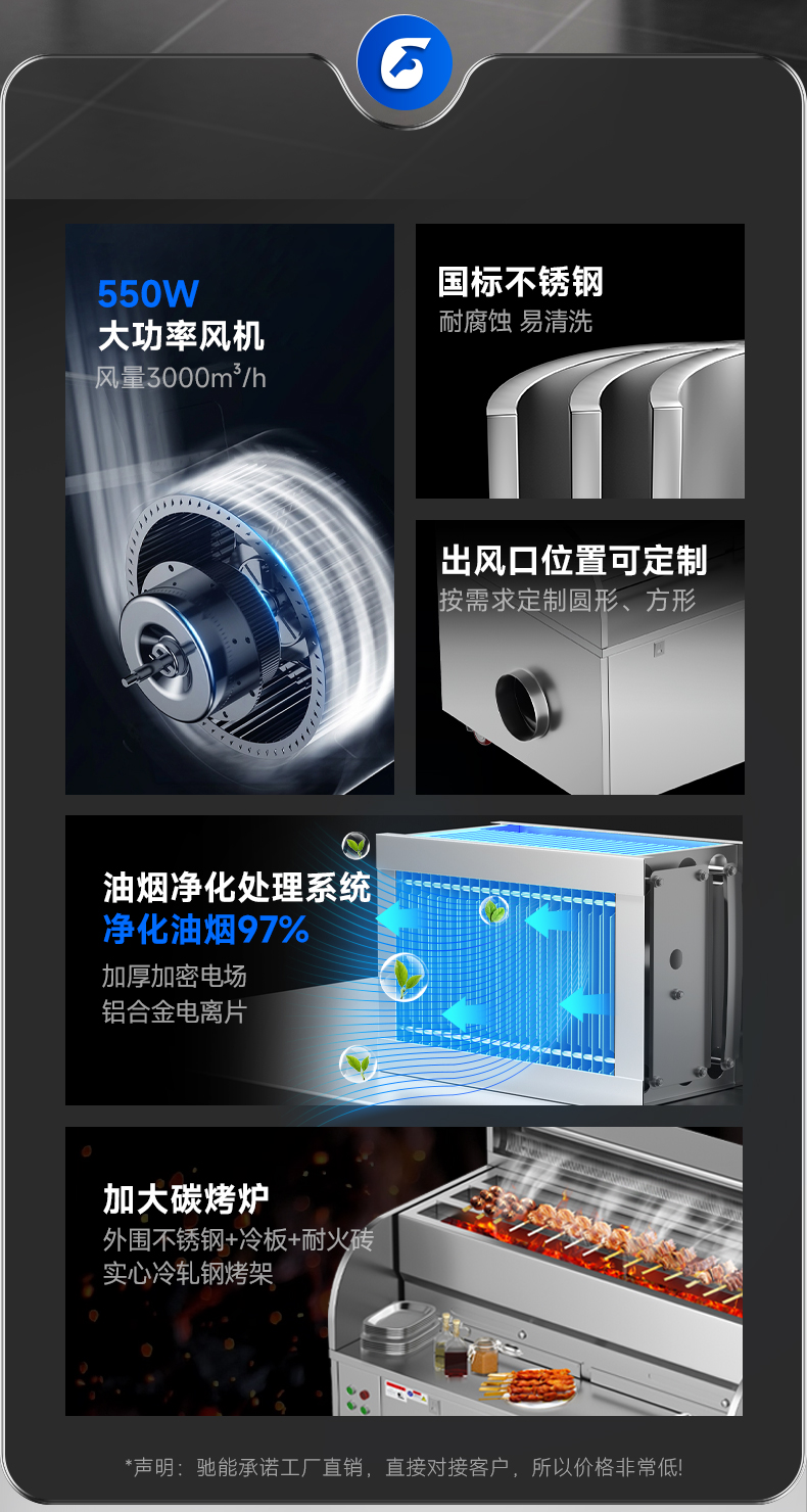 配置:风机+净化器*2+炭烤炉