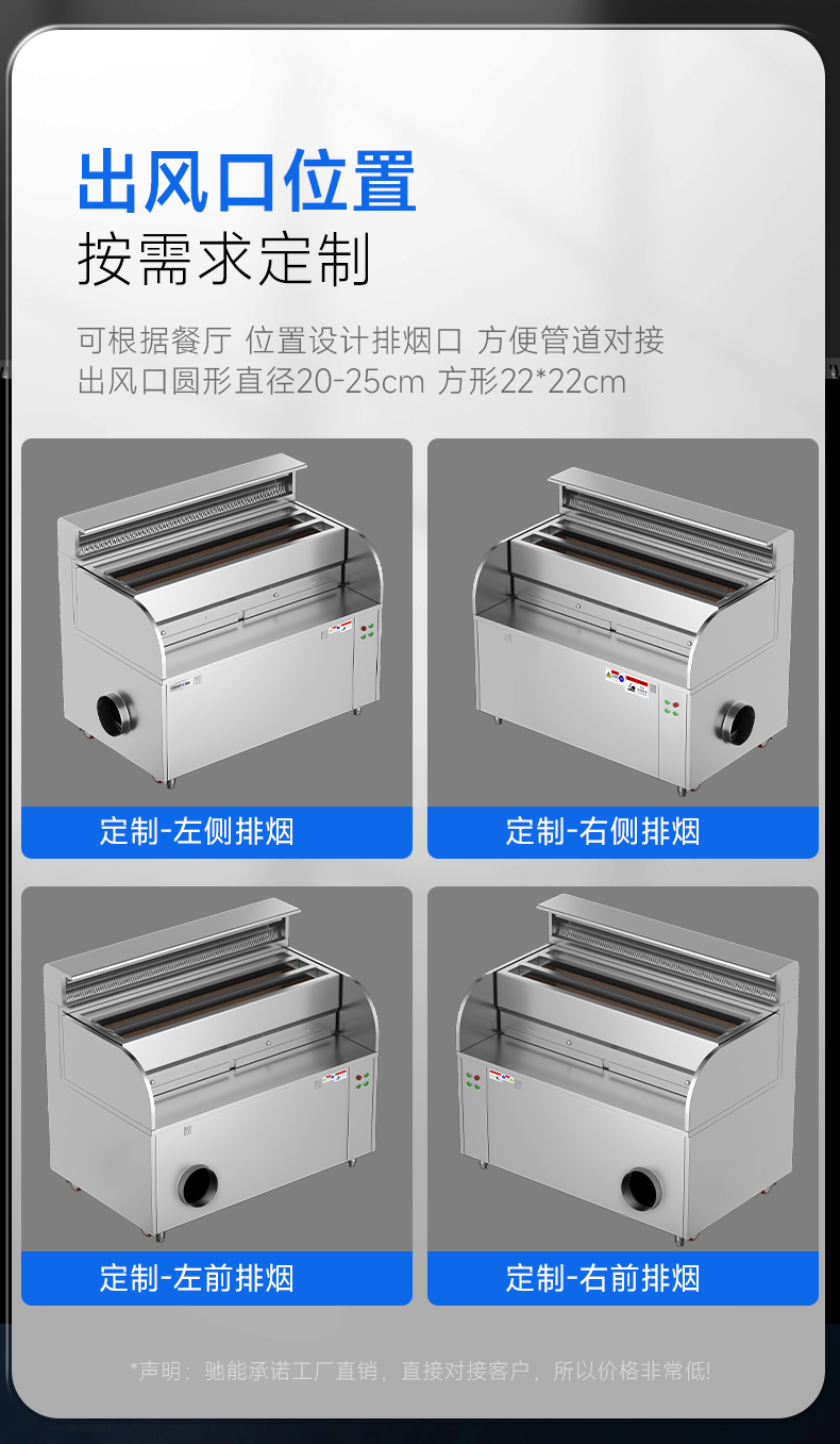 烟口位置:前右/前左/右侧/左侧/可定制